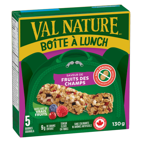 Nos NOUVELLES barres muffins moelleuses Val Nature sont faites de vrais fruits et de grains entiers. Obtenez tous les bienfaits d’un muffin moelleux sur le pouce. Essayez ces deux saveurs : Bleuets ou pomme et cannelle !