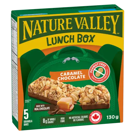 Whole grain rolled oats, Fructooligosaccharides (inulin fibre), Milk chocolate (sugar, cocoa butter, chocolate liquor, milk ingredients, soy lecithin, salt, natural flavour), Sugars (sugar, maltose, maltodextrin, barley malt extract, corn syrup solids, fancy molasses), Rice flour, Salted caramel crunch pieces (sugar, glucose, butter, milk ingredients, salt, coconut oil, baking soda, cocoa powder), Glycerin, High monounsaturated canola oil, Chicory root extract, Soy lecithin, Natural flavour, Salt, Calcium carbonate, Baking soda, Wheat flakes.