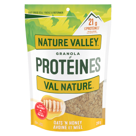 Nature Valley Oats n' Honey Protein Granola combines clusters of whole grain oats and real honey.